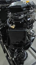 В качестве силового агрегата на моторе применен ДВС ВАЗ 11194Т. Сохранены штатными генератор, системы зажигания и впрыска топлива. Частично изменена длина жгута проводов по сравнению с автомобильной комплектацией. Доработаны: корпус термостата, крышка головки цилиндров, маховик, привод дроссельной заслонки, система удаления картерных газов. Применены оригинальные впускной и выхлопной коллекторы, крепление генератора, корпус картера и корпус воздушного фильтра, поршни с углубленными лунками. Воздушный фильтрующий элемент от ГАЗ 31105. В качестве стартера использован редукторный стартер от а/м ВАЗ 2101/2121. Штатный топливный насос высокого давления перенесен в отдельную емкость в корпусе дейдвуда, охлаждаемую водой. Подача топлива от отдельного бака к насосу осуществляется за счет разрежения во впускном коллекторе при работе мотора и регулируется поплавком. Система охлаждения разделена на 2 потока - отдельно с термостатом для блока и головки цилиндров и напрямую для выхлопного коллектора, емкости масла в дейдвуде и бензонасоса. Далее оба потока впрыскиваются в выхлопную трубу. Забор воды под давлением идет из корпуса водомета. Перед подачей воды к ДВС предусмотрена емкость отстойник в дейдвуде. Для гашения вибраций в системе подвески двигателя применены 7 сайлентблоков передней подвески ВАЗ. Система откидывания мотора состоит из силового гидроцилиндра (применены широко распространенные манжеты и кольца уплотнения), электрической гидропомпы высокого давления, РВД, двух кнопок управления (на поддоне и выносной), датчика угла и электронного блока управления. Обеспечена возможность регулировки угла как в движении, так и на остановленном двигателе. ЭБУ Bosh 7.9.7 или Январь 5.2 и другие электронные блоки находятся в специальном пластиковом кожухе на крышке картера и защищены от воды